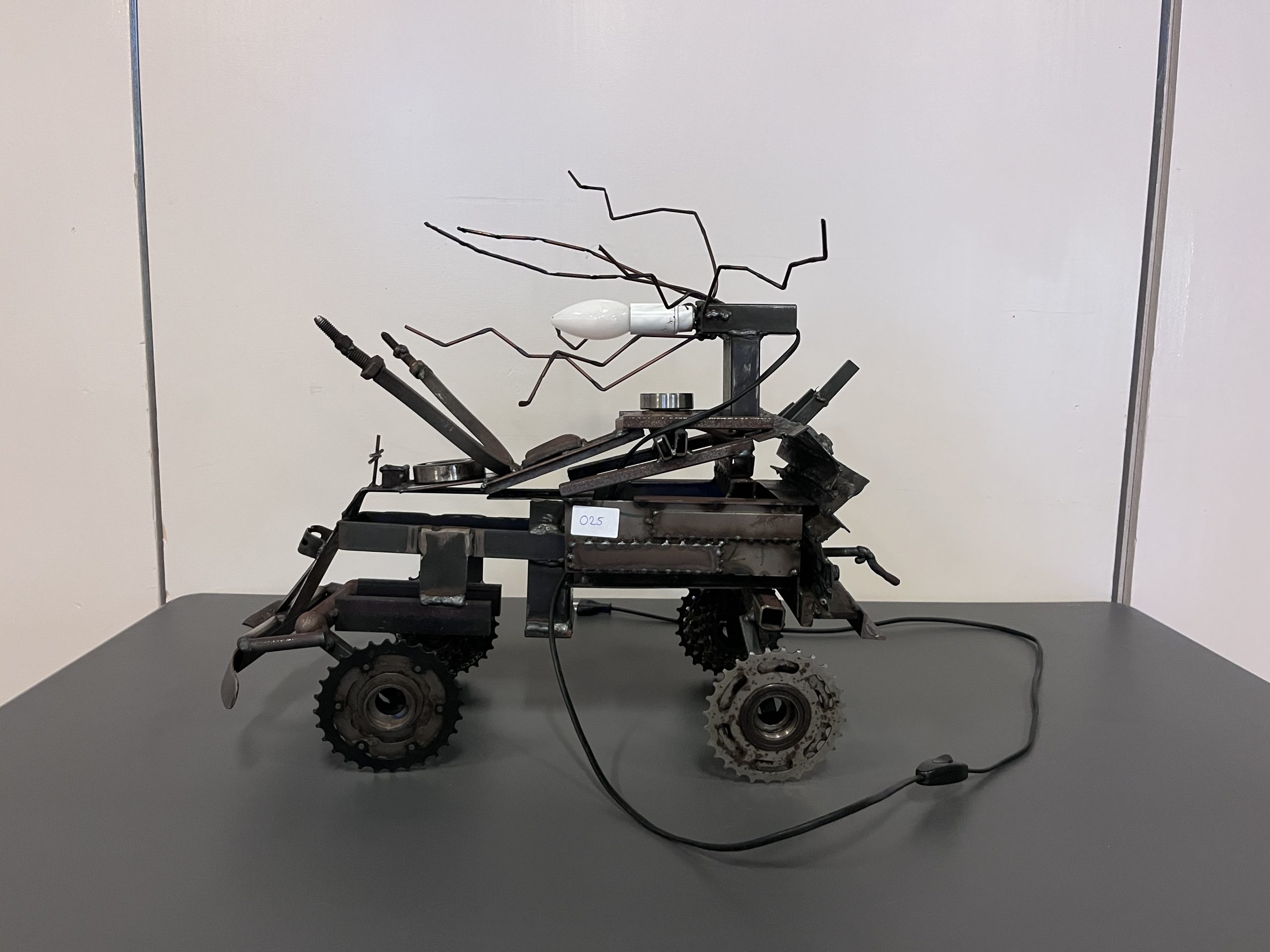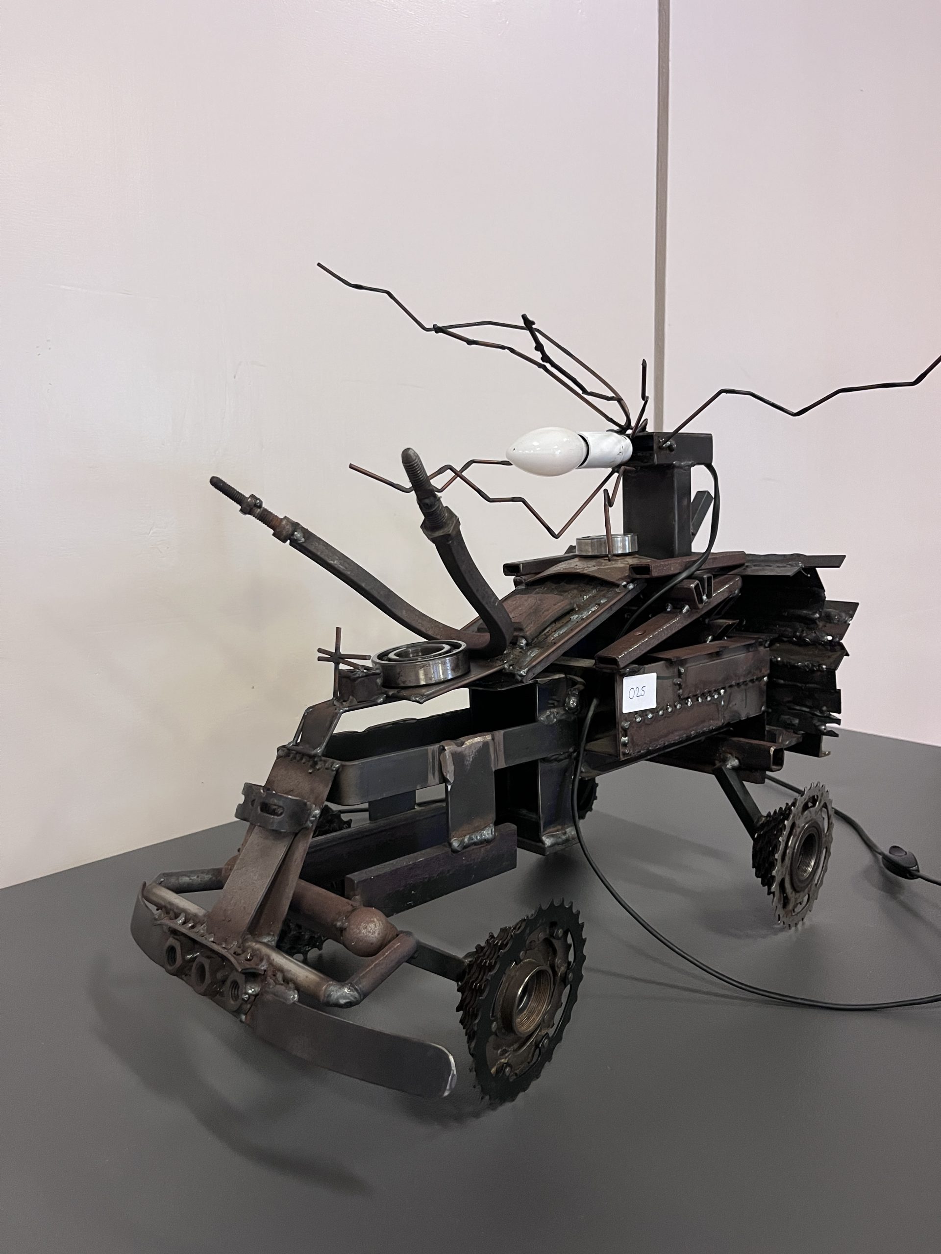 Unieke, handgemaakte MADMAX lamp met stoer industrieel design. Perfect als opvallende blikvanger in je interieur.